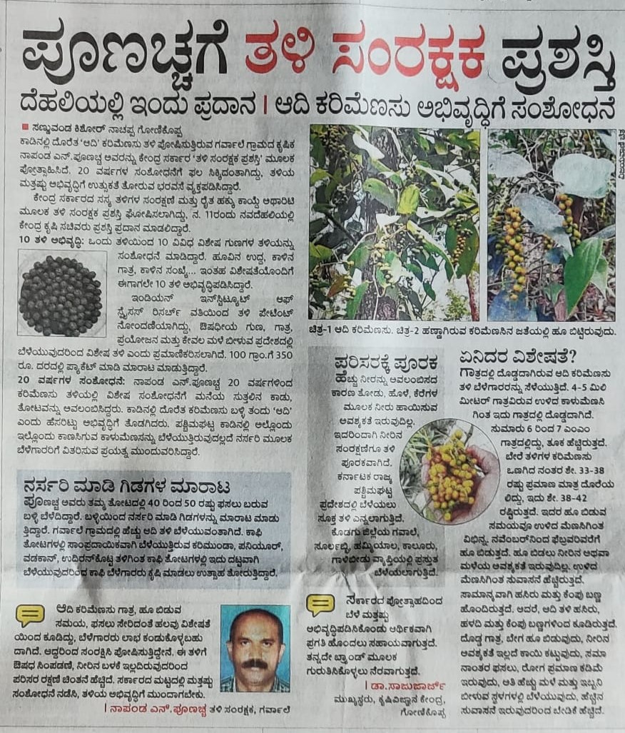 Shri Poonacha N: Plant Genome Saviour awardee of Govt of India