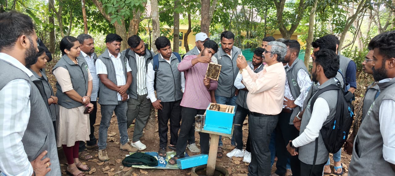 The lecture on Role of honeybees in pollination of Agricultural and Horticultural crops and demonstration of using native honeybees for pollination was conducted. A total of 40 Input Dealers of Kodagu District attended the programme.